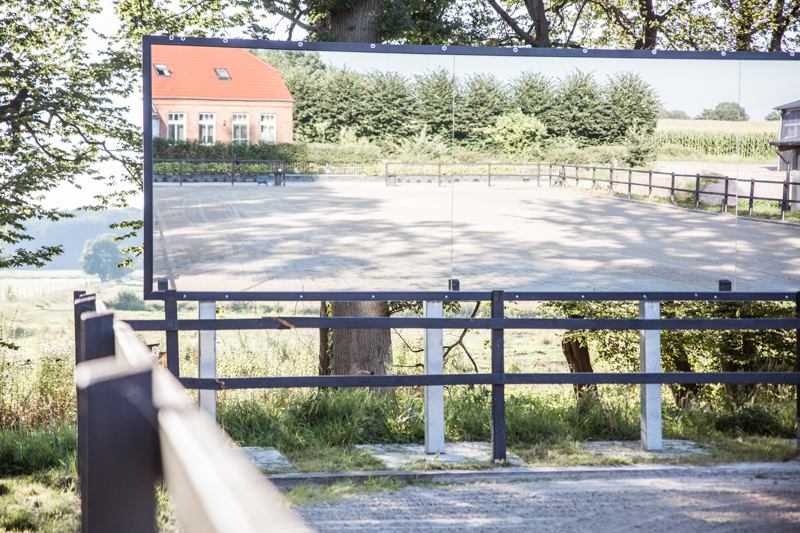 Unser 20 x 60m großer Außenreitplatz bietet beste Trainingsmöglichkeiten bei jedem Wetter. Wir legen sehr viel Wert auf einen perfekten Reitplatzboden und fahren und bewässern den Platz deshalb regelmäßig. Auch bei Regenwetter kann der Platz durch eine gute Drainage und leichtes Gefälle ohne Probleme genutzt werden. Seit 2019 befindet sich an der kurzen Seite ein 20m langer Spiegel, um sich und sein Pferd auch auf dem Außenplatz überprüfen zu können.